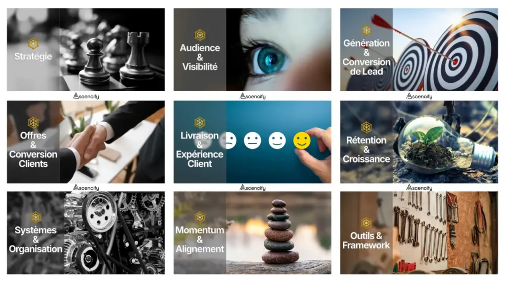 - Un accès aux ressources, templates et outils Ascencify pour structurer ton business.